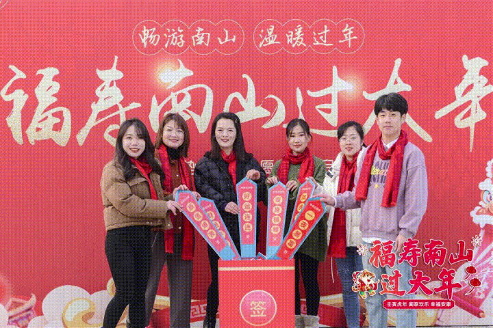 今天的南山景區(qū),張燈結彩喜氣洋洋,節(jié)目紛呈其樂融融,到處洋溢著濃濃的年味。