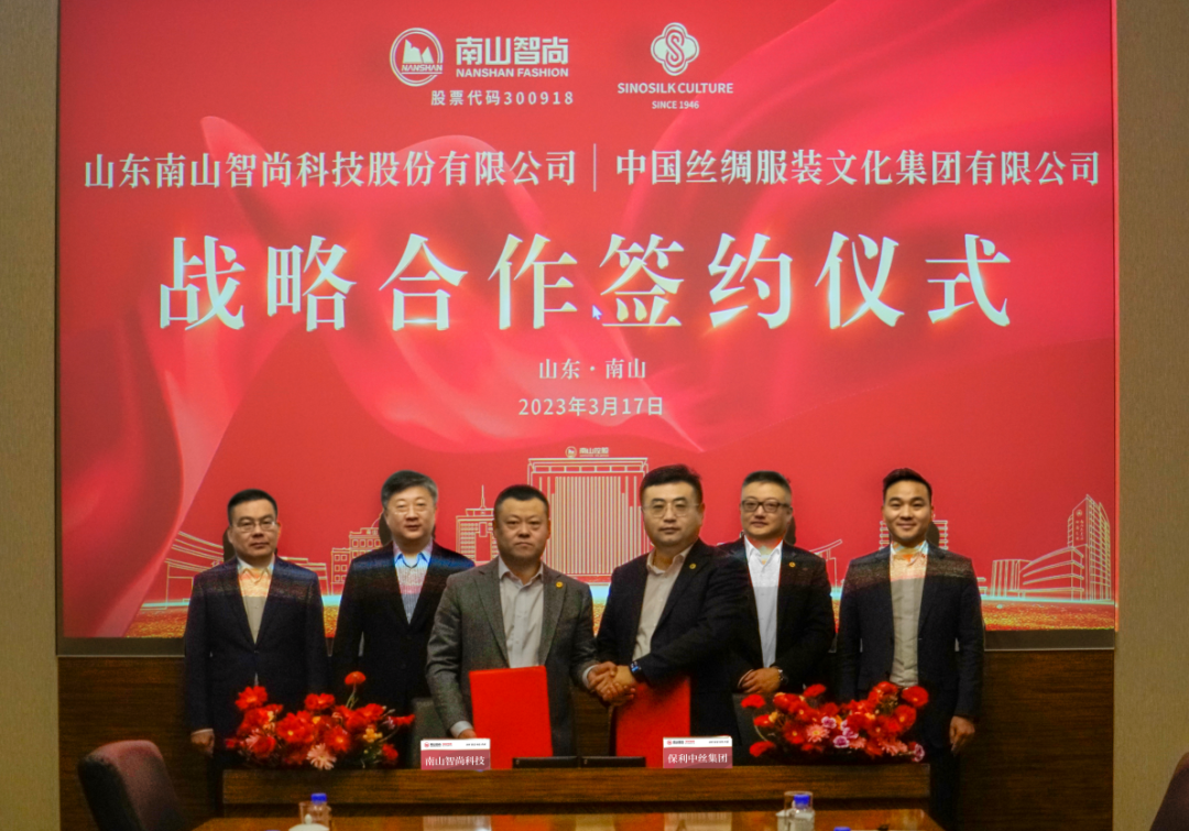 日前,山東南山智尚科技股份有限公司與中國絲綢服裝文化集團在山東南山會議中心就戰(zhàn)略合作進行了深入探討溝通,南山智尚董事長兼總經理趙亮、服飾公司總經理王劍、精紡公司總經理劉剛中和中國絲綢服裝文化集團董事長朱立、副董事長蔡云杰、總經理董健等主要領導出席了此次會議。