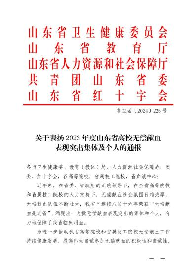 近日,山東省衛(wèi)生健康委員會(huì)、山東省教育廳、山東省人力資源和社會(huì)保障廳、共青團(tuán)山東省委和山東省紅十字會(huì)聯(lián)合印發(fā)的《關(guān)于表?yè)P(yáng)2023年度山東省高校無(wú)償獻(xiàn)血表現(xiàn)突出集體及個(gè)人的通報(bào)》,煙臺(tái)南山學(xué)院在無(wú)償獻(xiàn)血工作中表現(xiàn)優(yōu)異,多個(gè)單位及個(gè)人獲省級(jí)表彰,學(xué)校青年志愿者協(xié)會(huì)連續(xù)兩年獲評(píng)“山東省無(wú)償獻(xiàn)血志愿服務(wù)表現(xiàn)突出集體”。