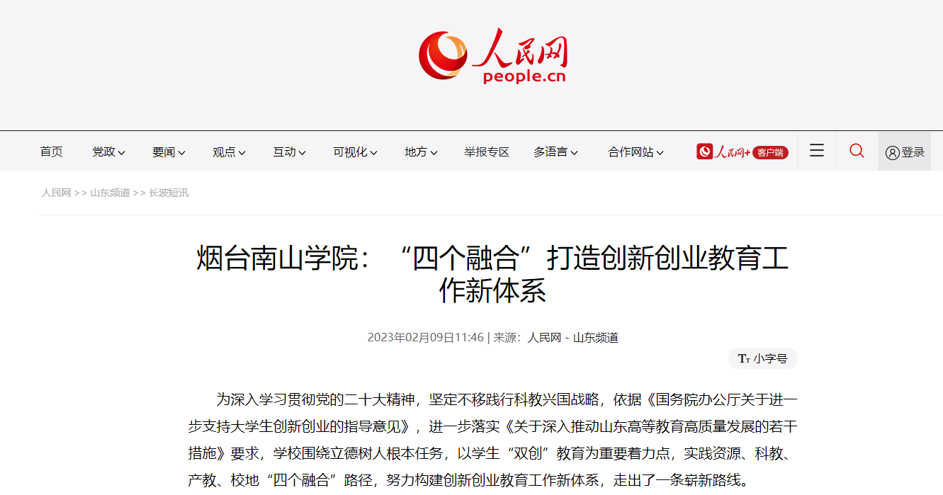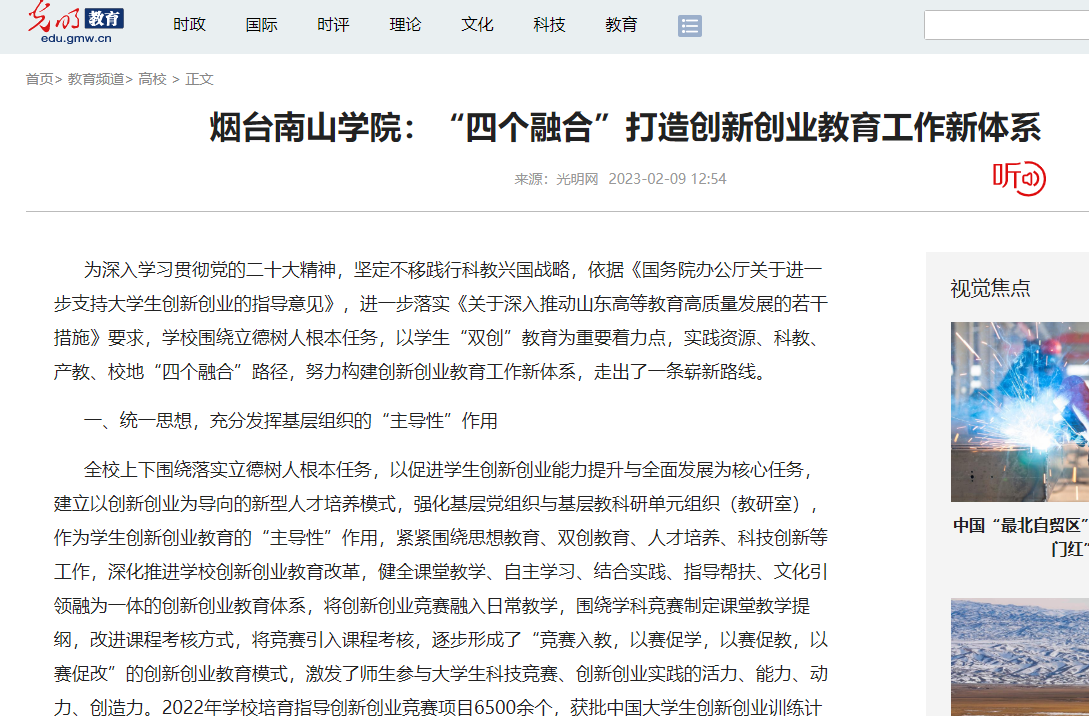 光明網(wǎng):煙臺(tái)南山學(xué)院“四個(gè)融合”打造創(chuàng)新創(chuàng)業(yè)教育工作新體系