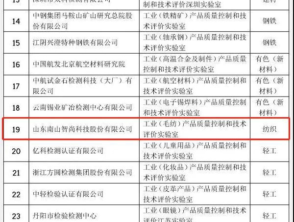 南山智尚入圍工業(yè)產(chǎn)品質(zhì)控和技術(shù)評(píng)價(jià)實(shí)驗(yàn)室名單