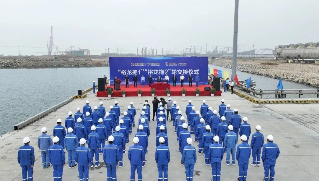 5月18日,南山控股為裕龍石化園區(qū)配套定造的船舶“裕龍拖1”“裕龍拖2”輪交接儀式在裕龍港務(wù)大件碼頭隆重舉行,山東裕龍港務(wù)有限公司和日照港達(dá)船舶重工有限公司順利完成船舶移交工作。