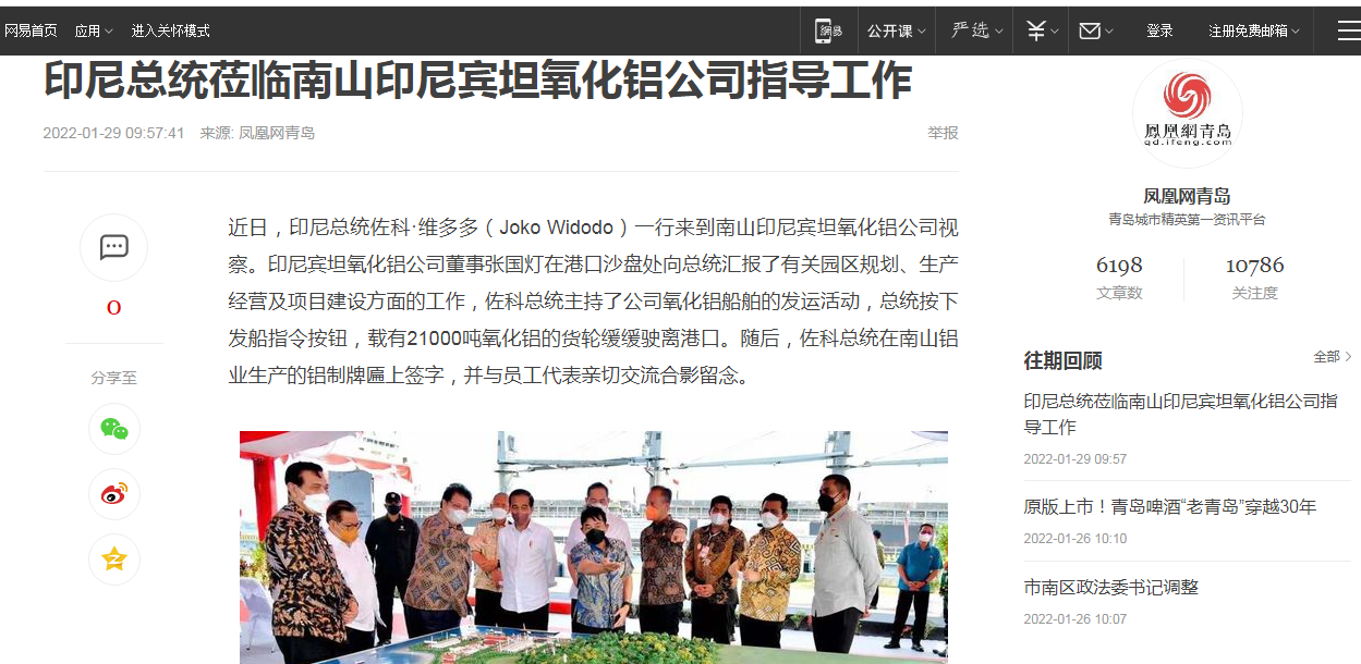 印尼總統(tǒng)蒞臨南山印尼賓坦氧化鋁公司指導(dǎo)工作-鳳凰網(wǎng)