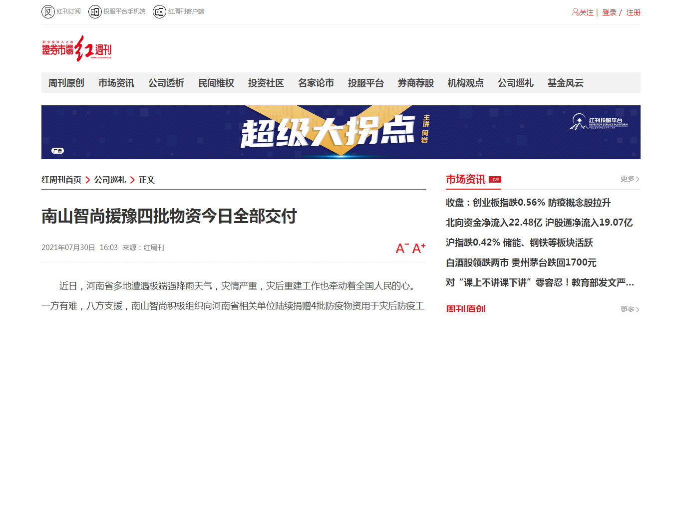 南山智尚援豫四批物資今日全部交付-證券市場紅周刊
