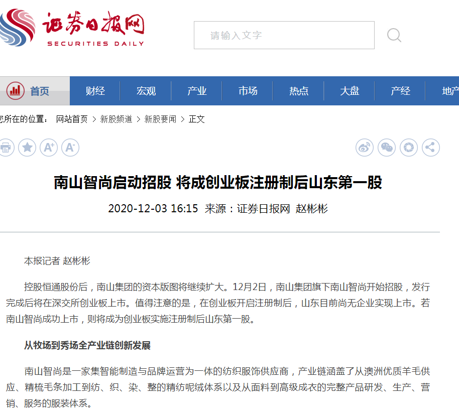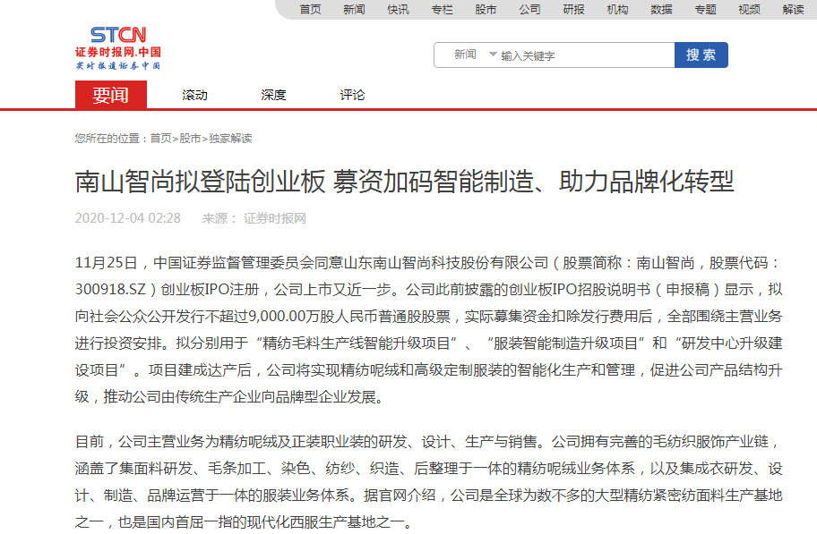 南山智尚擬登陸創(chuàng)業(yè)板 募資加碼智能制造、助力品牌化轉(zhuǎn)型-證券時(shí)報(bào)網(wǎng)