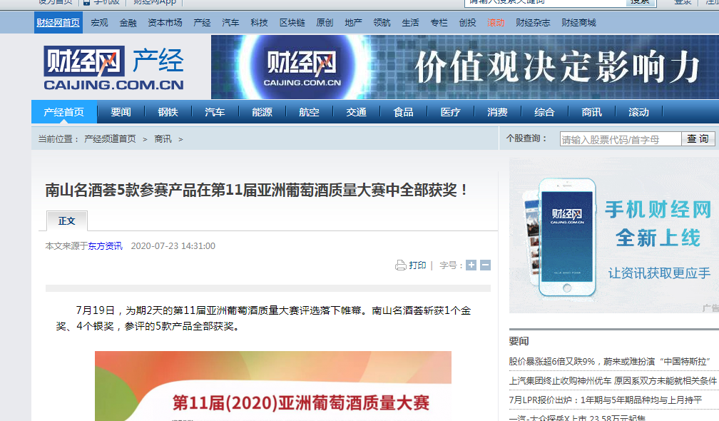 南山名酒薈5款參賽產(chǎn)品在第11屆亞洲葡萄酒質(zhì)量大賽中全部獲獎(jiǎng)!-財(cái)經(jīng)網(wǎng)