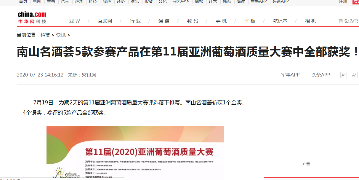 南山名酒薈5款參賽產(chǎn)品在第11屆亞洲葡萄酒質(zhì)量大賽中全部獲獎(jiǎng)!-中華網(wǎng)